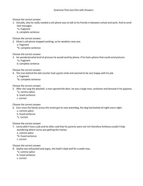 Read grammar post test answers Doc online is a convenient and frugal way to read grammar post test answers you love right from the comfort of your own home. Yes, there sites where you can get Doc "for free" but the ones listed below are clean from viruses and completely legal to use.